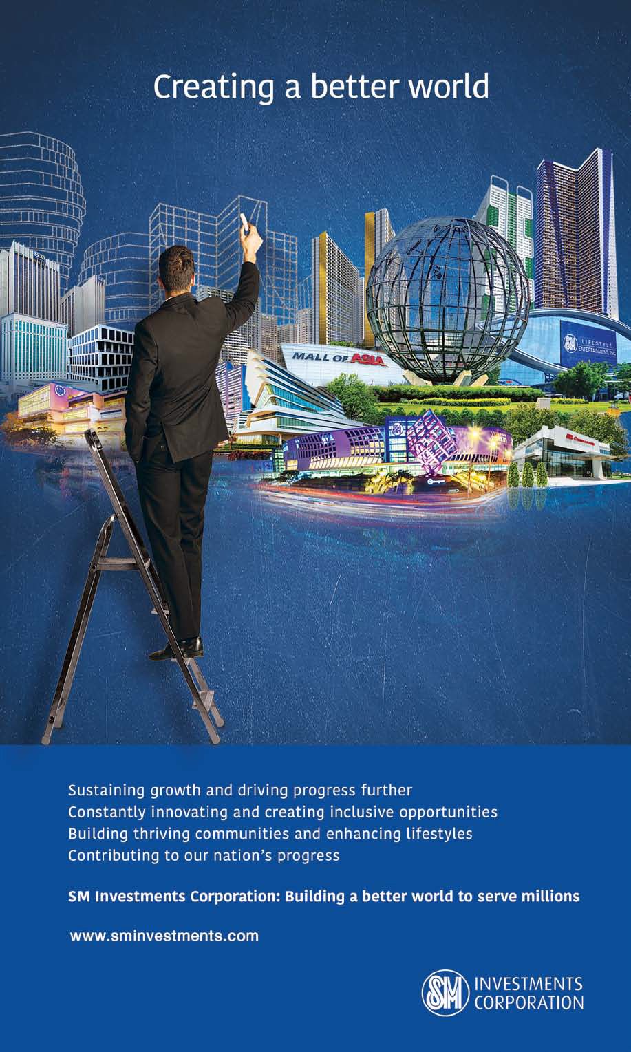 SMIC’s commitment to the Philippines’ economy can be seen in the Group’s growing interests in large-scale retail, malls, banking and real estate and its role as a driver for growth. ‘In terms of real estate, property, the hiring of people, supporting suppliers and delivering solutions to service providers in local areas, we are a catalyst for the economy’, says Ms. Sy-Coson. ‘We facilitate business activities in the spaces in which we operate and we try to offer customers the same experiences consumers expect in other countries by developing premium shopping centres and providing quality services’.