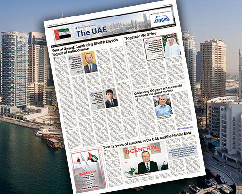“The visit of Mr. Shinzo Abe, prime minister of Japan, to the UAE this April was of great importance for the promotion of business and investment in both Japan and the UAE. Abe and Crown Prince of Abu Dhabi and Deputy Supreme Commander of the UAE Armed Forces H.H. Sheikh Mohammed bin Zayed Al Nahyan affirmed their determination to further develop their strategic relationship toward the future by starting a framework of cooperation called the Comprehensive Strategic Partnership Initiative.”